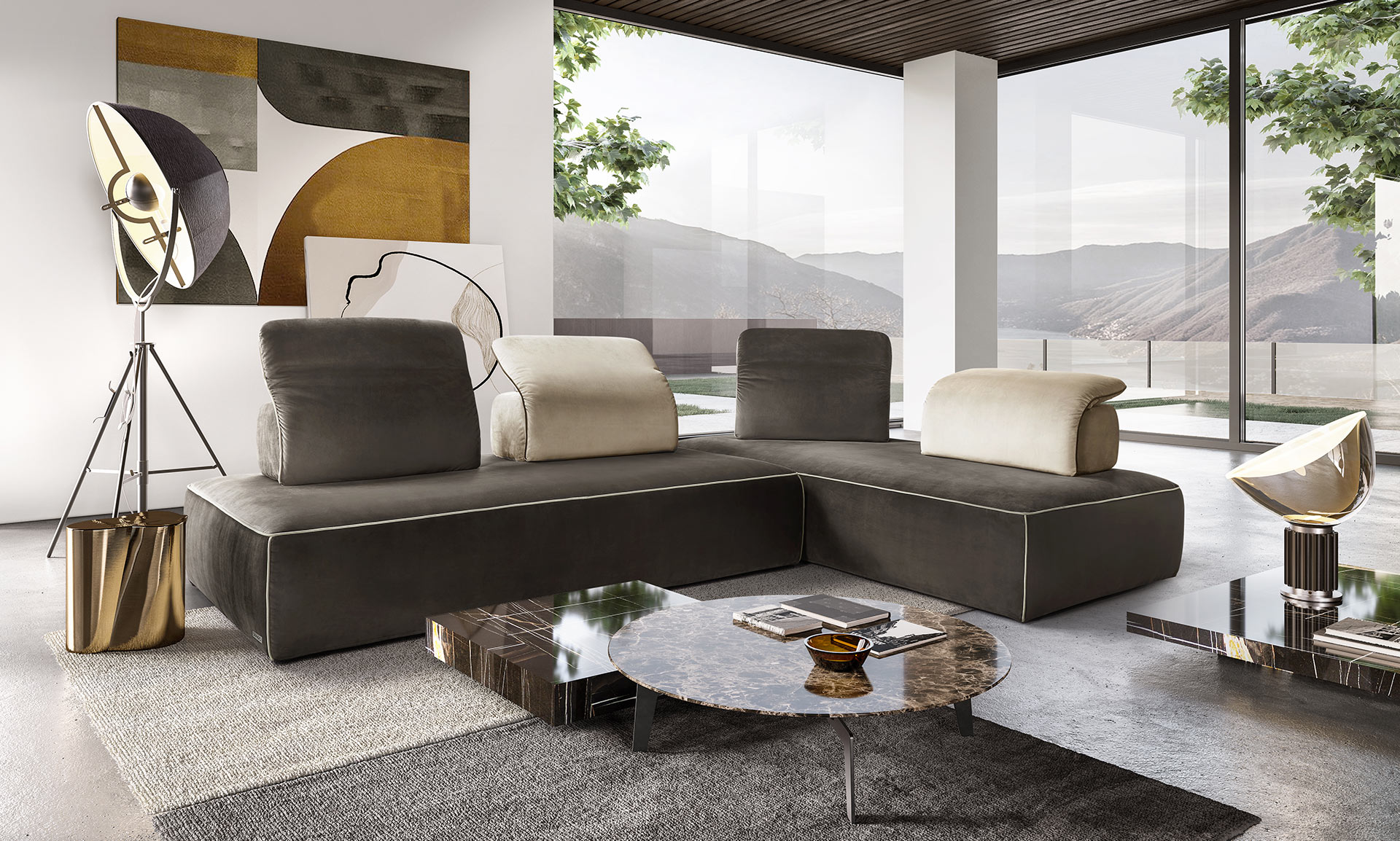 Delfino è il divano perfetto per chi ama cambiare: lo schienale amovibile in tessuto antiscivolo può essere spostato per creare composizioni creative e mai banali.